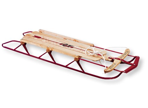 Defining winter fun since 1889, this is the sled that generations have come to revere as a classic. Solid birch slats offer outstanding durability. Steel runners provide traction on packed snow and ice. Birch steering bar allows rider to flex runners for good control. Ages 8 and above. Helmet recommended. Imported. 48" Carries one person up to 150 lb. 6"H x 22"W x 48"L. 12 lb. 54" Carries two children or one adult up to 175 lb. 6"H x 22"W x 54"L. 14 lb. 60" Carries two children or one adult up to 200 lb. 6"H x 22"W x 60"L. 16 lb.